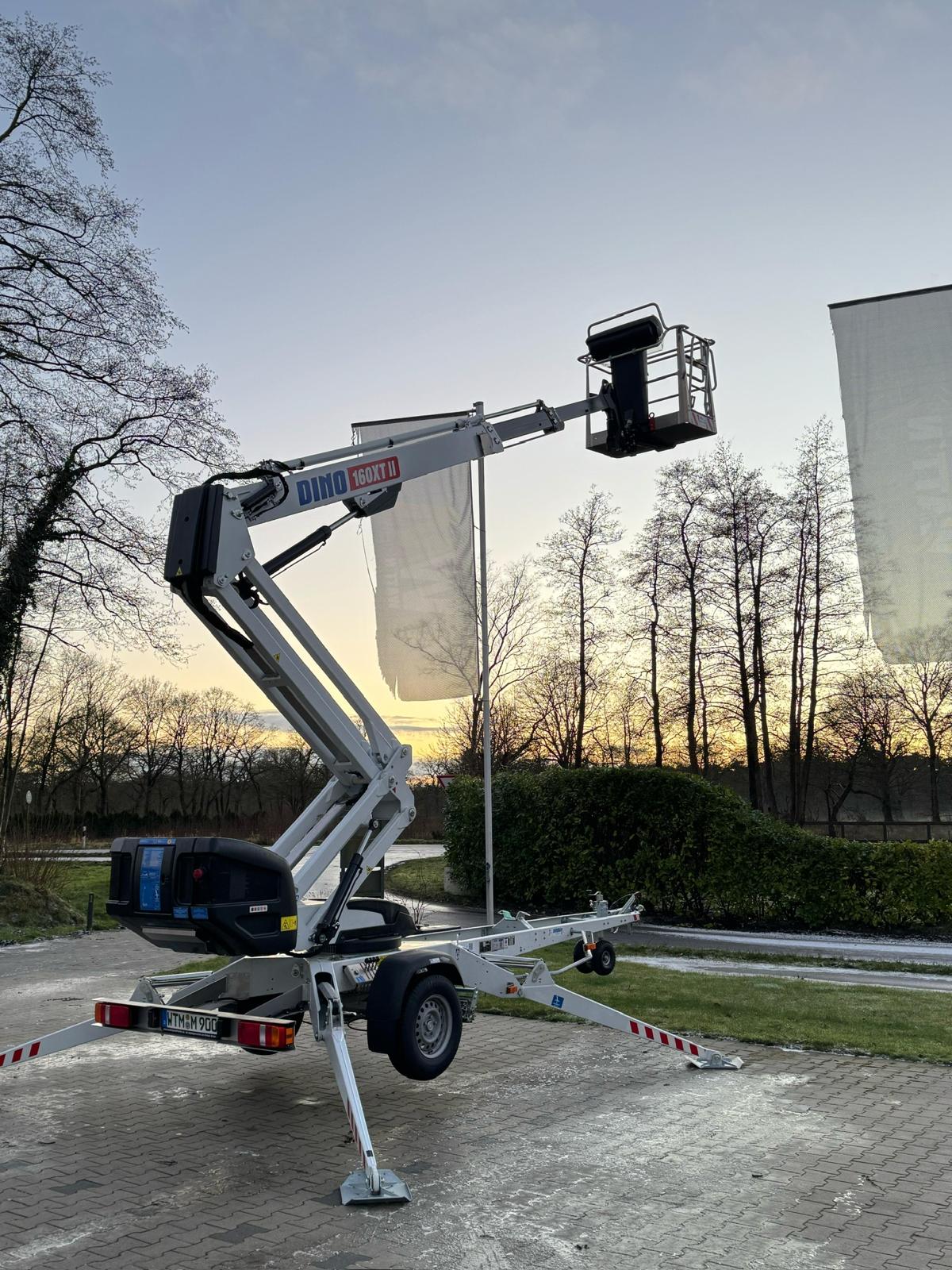 Die DINO 160XT II Anhänger-Arbeitsbühne ist das kompakteste und leichteste Modell der XT-Serie von DINOlift Oy. Mit einem Eigengewicht von nur ca. 2.000 kg lässt sich die Bühne auch mit kleineren Zugfahrzeugen problemlos transportieren – ideal für mobile Einsätze, wechselnde Baustellen und flexible Arbeitsumgebungen.